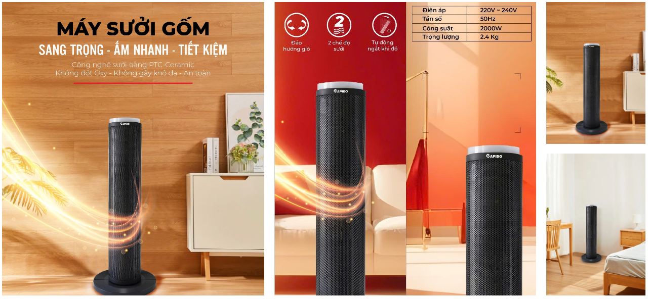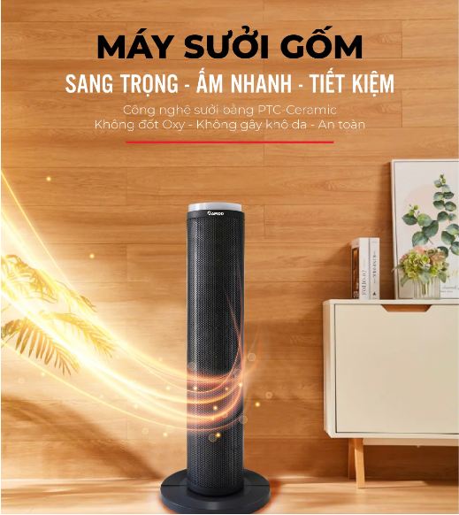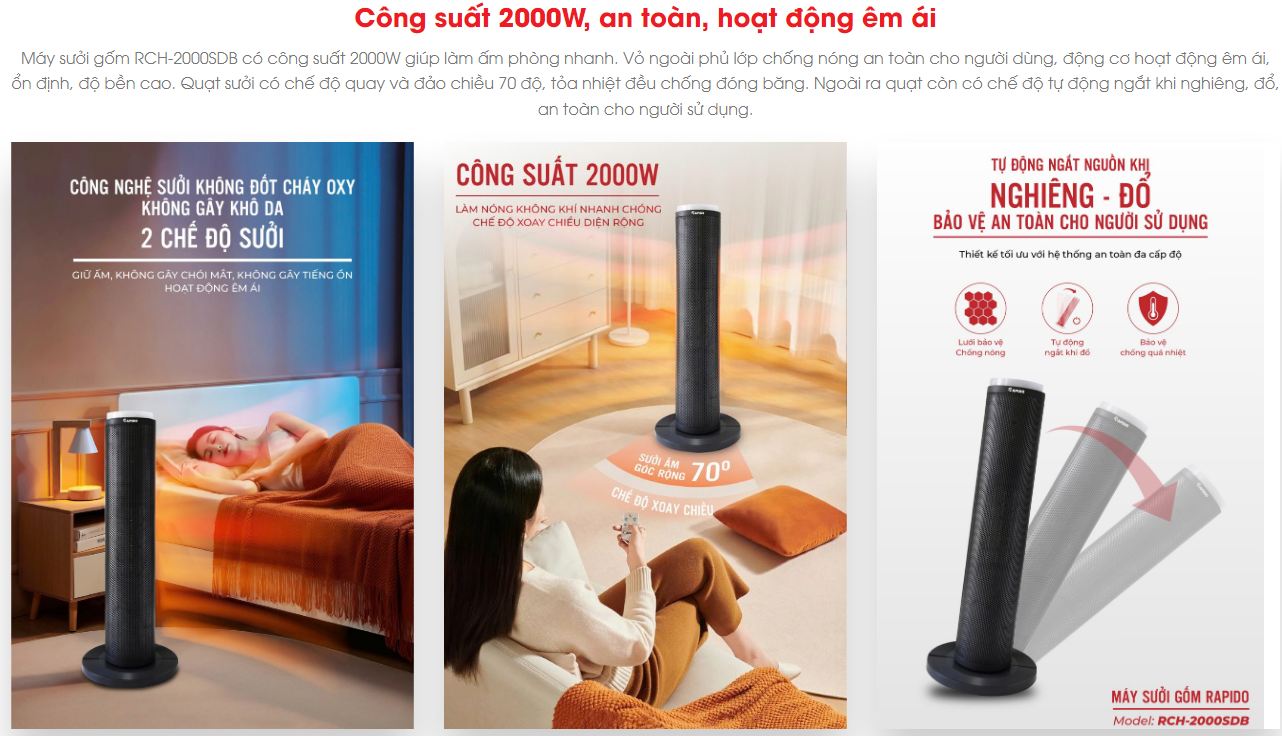 Mùa đông ấm áp với máy sưởi gốm RCH-2000SDB, với khả năng làm ấm phòng nhanh chóng với diện tích làm ấm lến tới 20m2.
